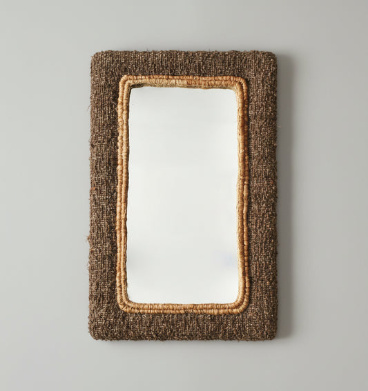 ARROYA-II WALL MIRROR - BROWN/NATURAL- HAND WOVEN - WOOL/JUTE & MDF