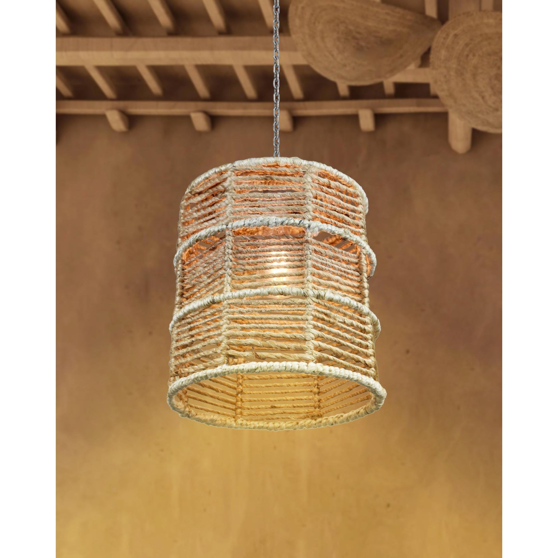 Sleek yet soulful, the MIRANTE Lamp pairs geometric form with the warm texture of handwoven jute. Its cylindrical design in soft natural and ivory tones brings a touch of coastal calm to any interior. Perfect for hanging in clusters or letting shine solo, this bohemian lamp is a quiet statement with handcrafted charm.